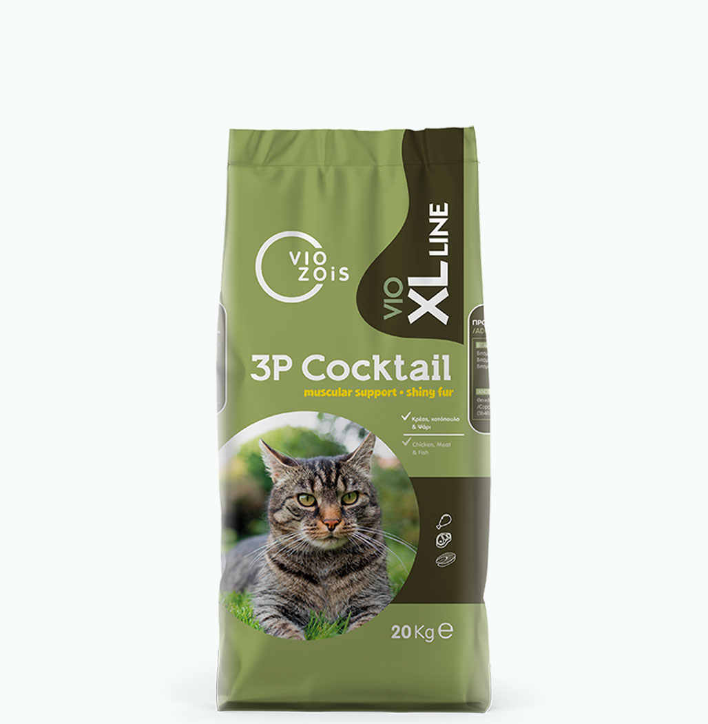 Η μονόχρωμη XL Line 3P Cocktail με κοτόπουλο και ψάρι είναι μια πλήρης και ισορροπημένη γατοτροφή. Είναι ιδανική για ενήλικες γάτες, με διαιτητικές φυτικές ίνες και ταυρίνη που συμβάλλουν στη βελτίωση του καρδιαγγειακού συστήματος καθώς επίσης και την υγεία του τριχώματος. Η ειδικά μελετημένη σύνθεσή της υποστηρίζει αποτελεσματικά τη μυϊκή μάζα της ενήλικης γάτας.